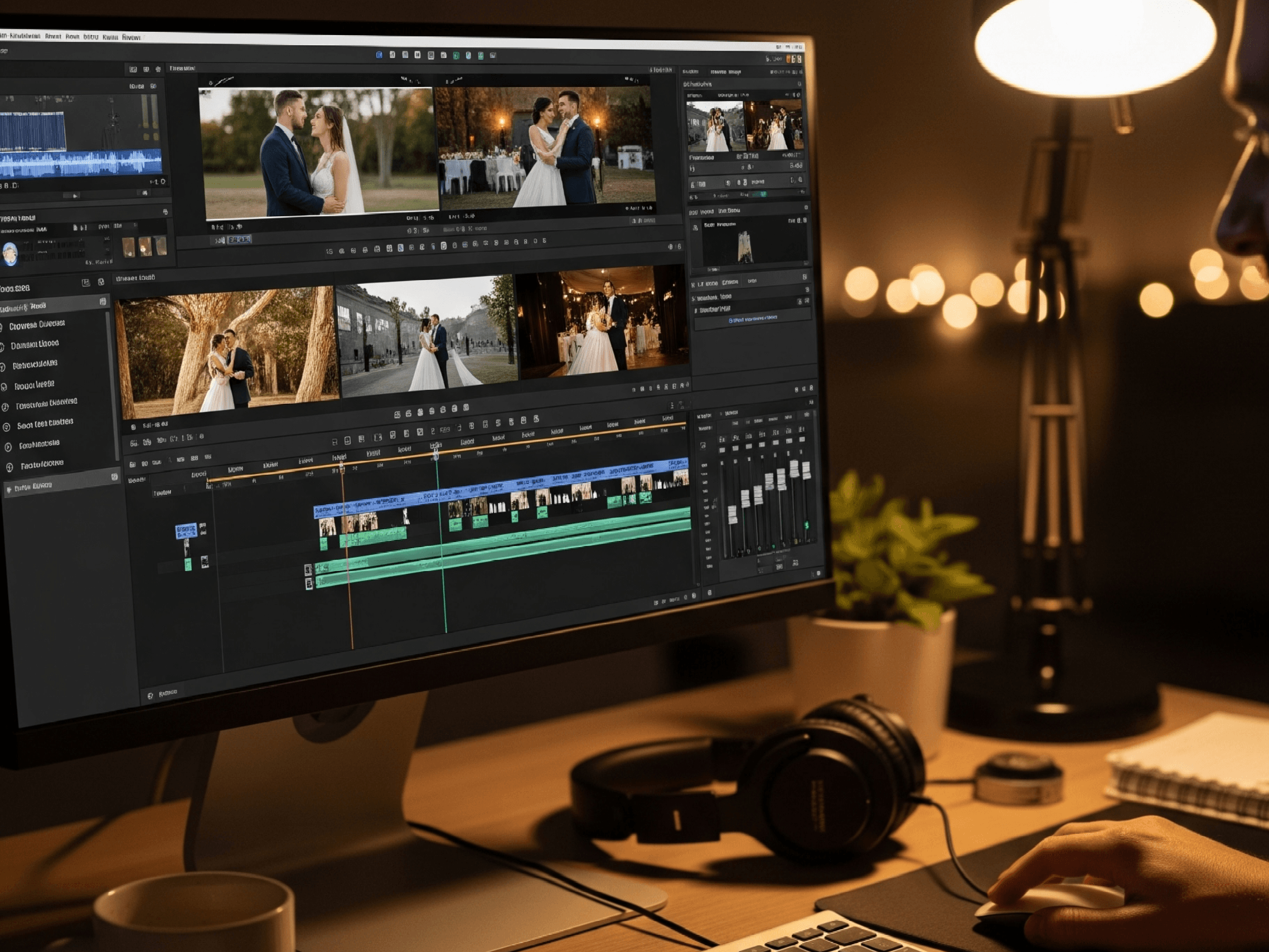 Intermediate Wedding Film Editing & Montage Build emotional Highlight Reels in Premiere Pro & DaVinci — music sync, audio mixing, color grading. 8 Hours - Intermediate